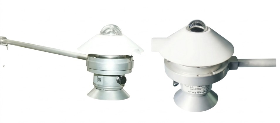 - Measures broadband solar radiation flux density with 180° field of view.